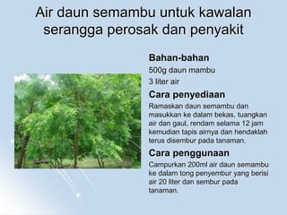 Cuka buluh ini sesuai digunakan untuk mengawal serangga perosak menggalakkan pertumbuhan tanaman merangsang pengeluaran kompos dan banyak lagi.